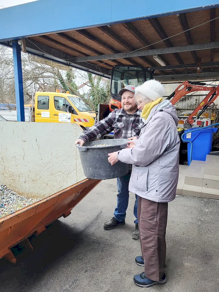 Der Samstag begann mit einem bangen Blick zum Himmel. Es war sehr kalt und trübe. Nach einigen Schneeflocken gab es keinen weiteren Niederschlag und der Sammeltag konnte beginnen. Die ganze Zeit über kamen Groß- und Kleinspender, sogar aus dem Oberharz und dem ganzen Umkreis. Wir erhielten sogar Kronkorken aus Einbeck. Die früher vorhandene Sammelstelle gibt es seit einigen Jahren nicht mehr, davon profitiert nun unsere Aktion.
