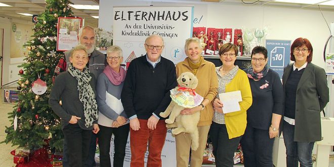 Das Aktionsteam für das Elternhaus Göttingen überreichte Harald Germandi, Kassenwart der Stiftung Elternhaus an der Uniklinik Göttingen, 5.875 Euro aus dem vergangenen 14. Adventscafé im Real-Kauf