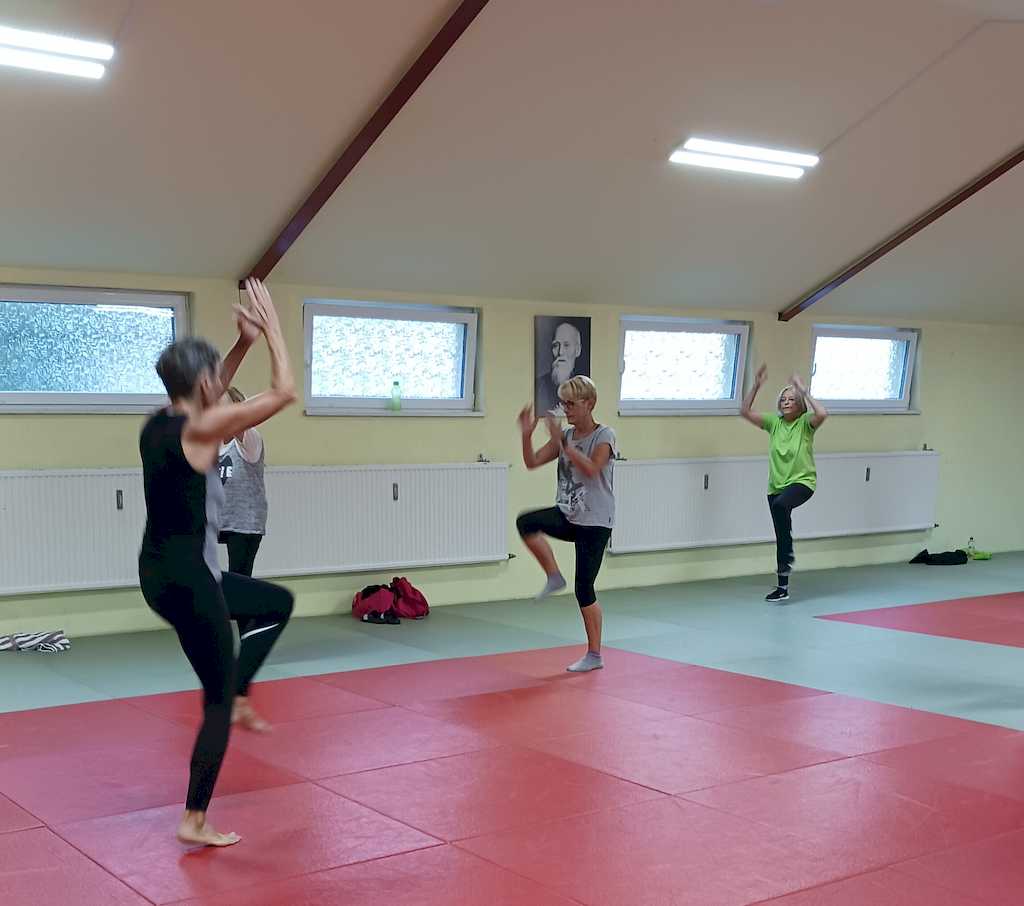 In der Jodo-Karate-Club-Sportschule in der Marienburger Str. gab es 5 Veranstaltungen, eine davon mit Außentermin. Am 16.09. von Power bis Yoga mit Birgitt mit 11 Teilnehmerinnen, am 17.09. Bodyworkout mit Birgitt mit 10 Teilnehmerinnen (5 waren schon am Montag dabei) am 18.09. Tai Chi als Außentermin im Stadtgarten Goslar mit 5 Teilnehmenden. Alle waren mit Begeisterung dabei. Der Yoga Termin mit Steffen musste auf den 23.09. verschoben werden. 14 Aktive hatten viel Spaß an der Trainingsstunde für den Guten Zweck. Auch in den Sportgruppen machte sich die aktuell häufig auftretenden Erkältungen bemerkbar.