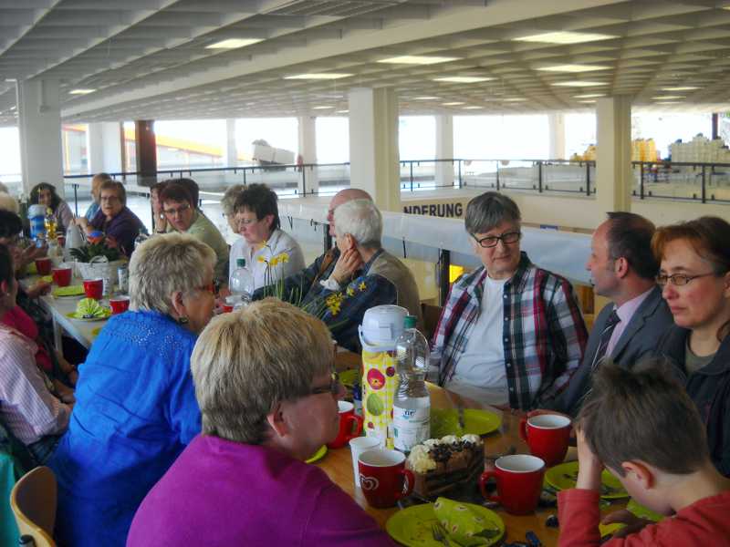 Der Hausmeister des Marktes, Herr Schubert, bringt zwar viele Gebrauchsgegenständ3e vom Boden herunter, der Aufbau muss jedoch abends vor der Aktion erfolgen. Hier müssen viele Tische getragen, Truhen verrückt und viel geputzt werden. Wir sind sehr froh, für diese Aufgaben ein paar junge Männer im Team zu haben, die nach ihrer Arbeit zu uns eilen und beim Auf- und Abbau helfen. Michél Bernhagen, Frank Helbig und Thorsten Kotzlik sind unsere Jungbrunnen, die Siegfried Latta, Hans- Georg Lang und Lothar Kolan bei den schweren Tischen und Truhen helfen und sie an 0rt und Stelle bringen. Ulla Herrmann, Ursel Apel, Evelyn Schorn, Inge Lang, Beate Bernhagen, Susi Latta und ich sind dann für die anderen Aufgaben wie Stühle tragen, Truhen und Tische putzen und Dekoration zuständig. Seit dem letzten Frühlingscafé hilft auch Fr. Ronneburg mit Felix. Der Aufbau dauert in der Regel ca. 2,5 bis 3 Stunden. Zum Abbau helfen, wenn wir Glück haben, wieder die jungen Männer. Haben diese mal keine Zeit, ist Frauenpower gefragt.