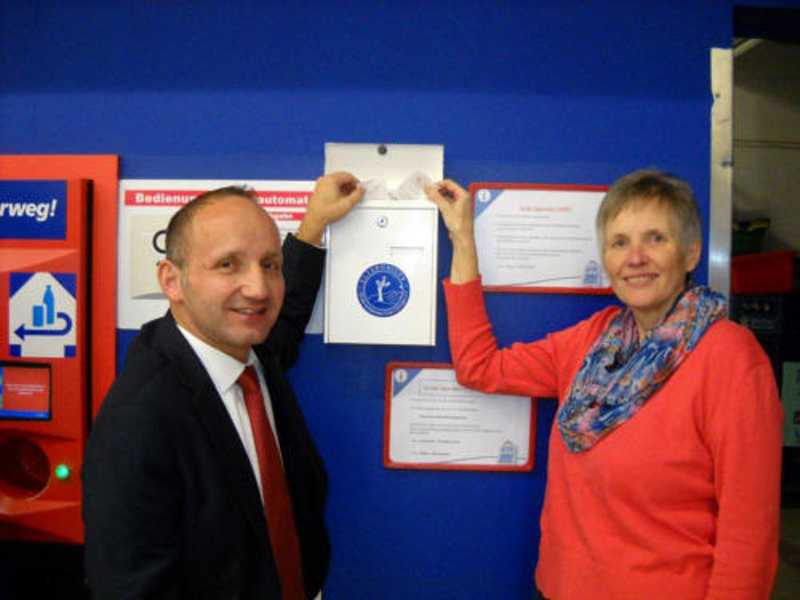 Die ersten Pfandbonspender waren der Geschäftsleiter des real,- Goslar, Jürgen Brockmann und die 0rganisatorin der Aktionscafés Karin Kolan.