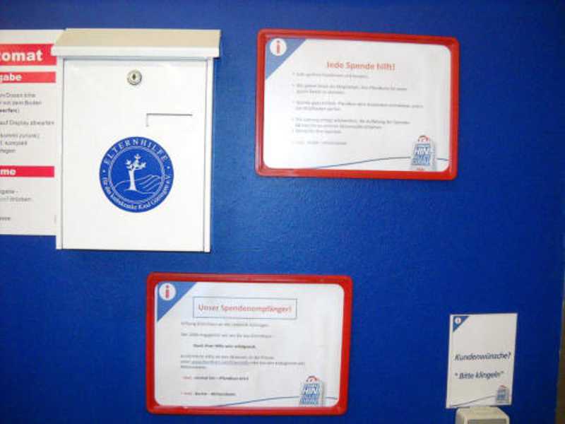 Nach Klärung aller rechtlichen Vorgaben ist es nun soweit. Ab sofort können Kunden des real,- Goslar ihren Pfandbon in den Spendenkasten werfen und somit die Elternhilfe für das krebskranke Kind Göttingen unterstützen.
