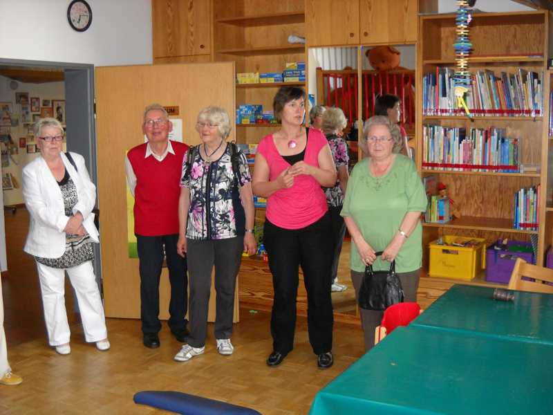 Bei dem Rundgang durch das Haus war auch diese Gruppe beeindruckt von der wohltuenden Atmosphäre des Hauses und der Einrichtung, der durchdachten Konzeption. Die Gruppe erfuhr vieles, über das schon in den Vorjahren berichtet wurde. In diesem Jahr berührte ganz besonders die vielfältige Nutzung des Seminarraumes, der mit seiner Dachbalkenkonstruktion an die Sonnenstrahlen erinnert. Ein Raum mit Wohlfühlatmosphäre, ganz nach Bedarf gestaltbar.