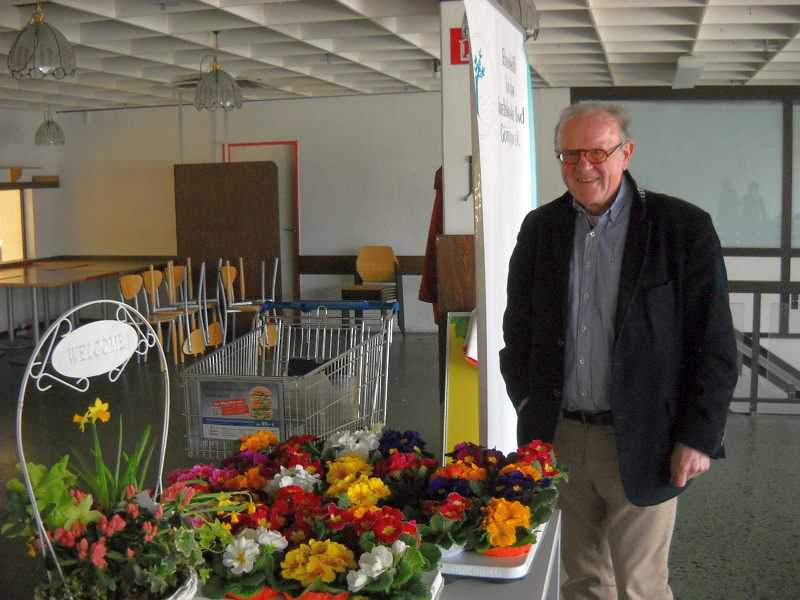 Das DANKE-CAFÈ findet im Anschluss an die Geldübergabe an die „Stiftung Elternhaus an der Uniklinik Göttingen“ satt. Herr Germandi, Kassenwart der Stiftung, hatte mit seiner Frau unser Frühlingsfest besucht und war überwältigt von der Vielfalt des Angebotes und der Anzahl der erforderlichen Helfer. Der Besuch zeigte auf, welche Arbeitsleistung hinter jeder Spende steht.