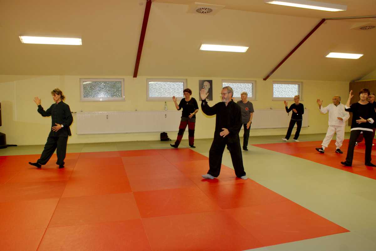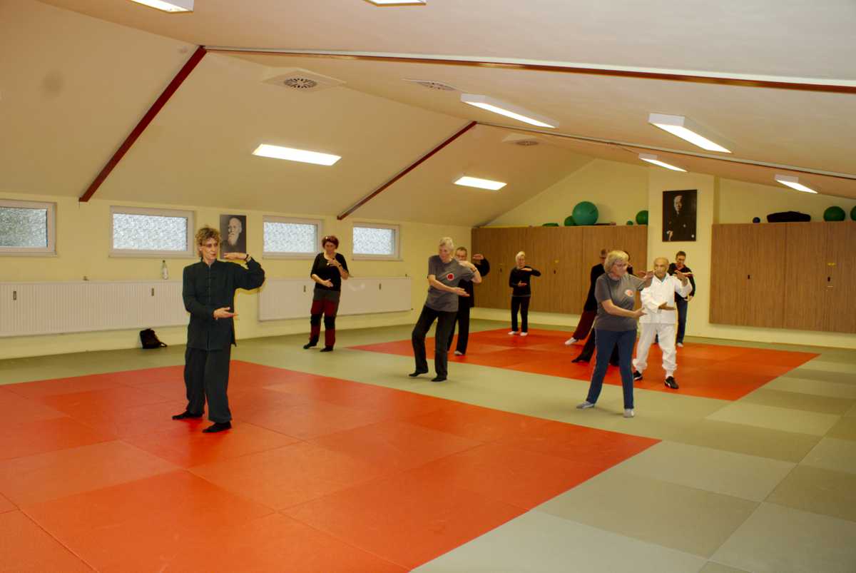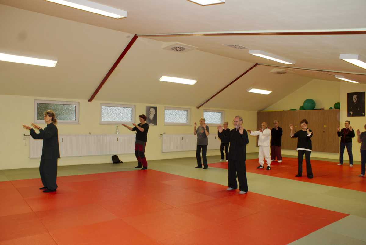 Fast den ganzen Donnerstag, den 29.09. sah das Wetter relativ gut aus. Doch ca. 45 Min. vor Trainingsbeginn schüttete es wie aus Eimern. Kurzerhand wurde das Training in die Judoschule verlegt. Leider dürfen wegen der Coronapandemie keine Besucher ins Haus. Dennoch trainierten 11 Tai Chi Begeisterte unter der Leitung von Vio und ließen sich ihre gute Laune und die Freude an bedächtiger, intensiver Bewegung und innerer Ruhe und Gelassenheit nicht nehmen.