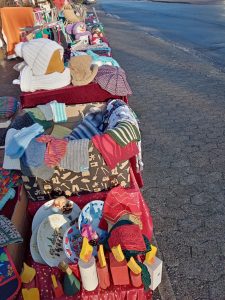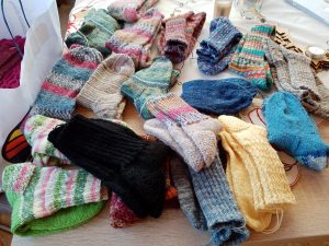 Viele Dinge sind nicht mehr möglich, andere jedoch weiterhin. So auch die nunmehr zum dritten Mal durchgeführte Haus-zu-Haus-Adventsaktion. In diesem Rahmen nahm das Aktionsteam auch am 19.12.22 an dem Adventsbasar der Jugend Oberharz erfolgreich teil. War es im November fast frühlingshaft warm, spielte das Dezemberwetter nicht mit. Daher konnte leider nur ein Außenbasar durchgeführt werden. Manche Stammkunden wurden von der schweren Grippe heimgesucht. Doch viele nutzten das tolle Angebot von ca. 70 selbst gebackenen Stollen, ca. 70 kg Keksen und Früchtebrot. Besonders beliebt waren in diesem Jahr die selbst gestrickten Strümpfe, Mützen, Schals, Westen und Pullover, die individuell genähte Kinderkleidung und eine traumhaft schöne Patchworkdecke. Wer nicht gut zu Fuß ist, bekam seine Kleinode nach Haus geliefert.