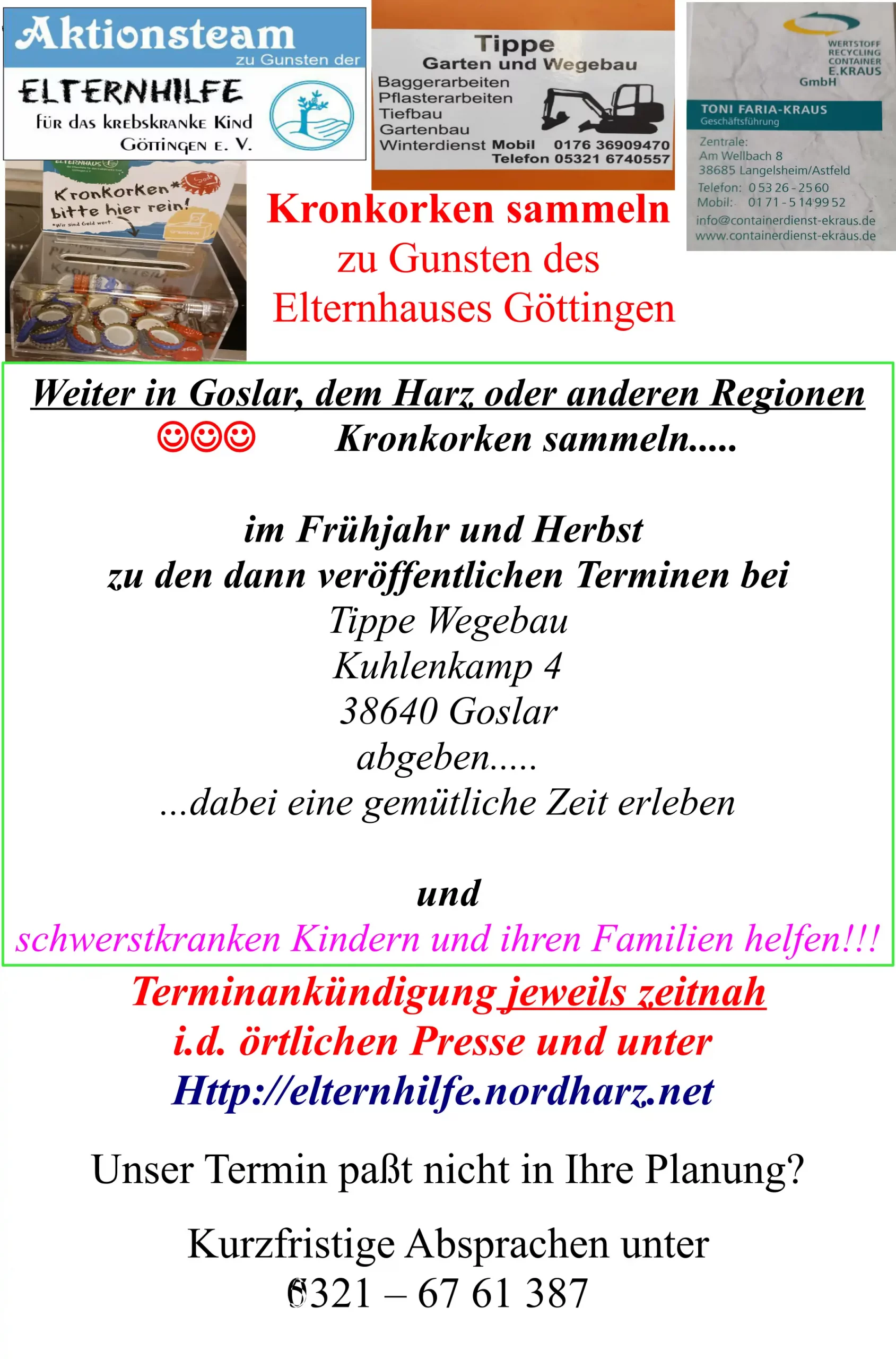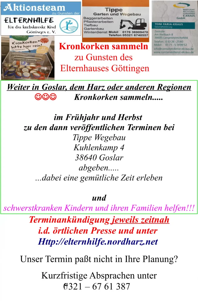 Elternhilfe Aktionscafes und Veranstaltungen zu Gunsten der Stiftung Elternhilfe für das krebskranke Kind Göttingen e.V.