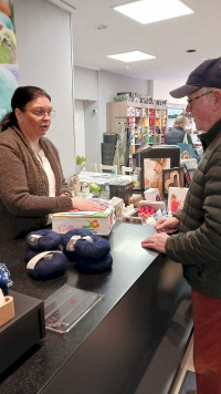 In diesem Jahr begab sich Harald Germandi, der Kassenwart der Stiftung Elternhaus an der Uniklinik Göttingen, gemeinsam mit seiner Ehefrau Anke nach Goslar in die Hokenstraße 23. Während einer kurzen Wartezeit bewunderten sie die beeindruckende Auswahl an verschiedensten Wollsorten und die daraus entstandenen individuellen Kleidungsstücke.