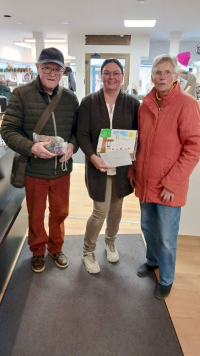 Die Inhaberin der Wollstube, Frau Zöllner, überraschte nicht nur mit einer Geldspende von 400,00 €, sondern auch mit weiteren liebevoll gestalteten Geschenken. Eine engagierte Kundin steuerte fleißig gestrickte Kindersocken bei, während Frau Zöllners Enkeltochter einen Spendenkarton mit fantasievoll gestrickten Mützen für Frühchen und Babys dekorierte. Diese Mützen wurden von Frau Zöllners Mutter gefertigt. Darüber hinaus fließen von jedem verkauften Paar selbstgestrickter Strümpfe in der Wollstube 3,00 € in die Spendenkasse, ergänzt durch großzügige Beiträge der Kunden.